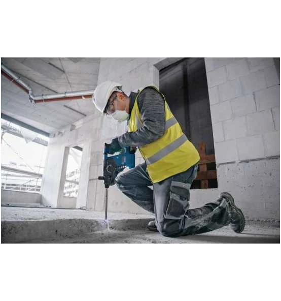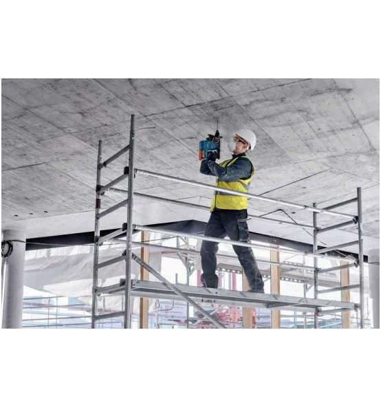 Er ist kompatibel mit Boschs in sich geschlossenem Staubabsaugsystem GDE 18V-16 Professional, das mit nur einem Klick am Bohrhammer befestigt werden kann.
