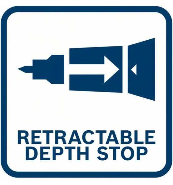 Für schnelles und müheloses Arbeiten ist der Tiefenanschlag einziehbar und muss nicht mehr zum Lösen von Schrauben entfernt werden; die Tiefeneinstellung bleibt hierbei unverändert.