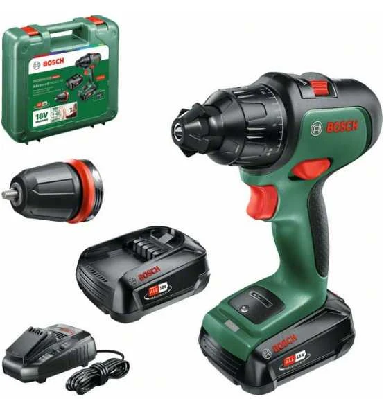 Akku-Zweigang-Schlagbohrschrauber AdvancedImpact 18. Schlagbohrschrauber mit einfachster Bedienung und großer Vielseitigkeit. Intuitive Auswahlmodi sowie automatische Gangwechsel passen für jede Anwendung. Das Schaltsystem bietet einen Richtungswechsel mit nur einem Klick. Richtungsanzeige mit LED-Licht. Einfach zwischen Magnetkappe zum Schrauben und Bohrfutter zum Bohren wechseln. Kraftvoll, kompakt und langlebig dank bürstenlosem Motor. Schrauben, Bohren in Holz und Metall, Schlagbohren in Ziegel- und Kalkstein. POWER FOR ALL: Ein Akku für das komplette Home & Garden-Gerätesystem. Syneon Technology steuert den Energieverbrauch für optimale Effizienz und längere Laufzeit. Im Lieferumfang enthalten: 2x Akkupacks PBA 18V 2,5 Ah W-B, Ladegerät AL 1830 CV (1 600 A00 5B3), Schrauberbit, Tragekoffer