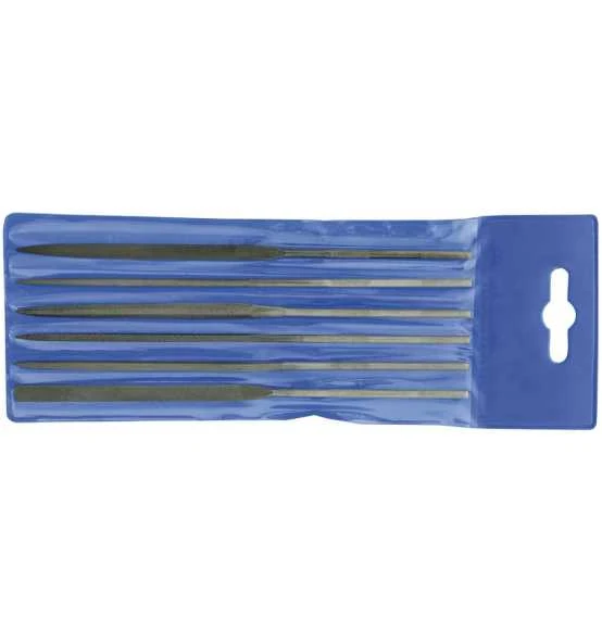 6 Präzisions-Nadelfeilen flachstumpf, flachspitz, dreikant, vierkant, rund, halbrund.