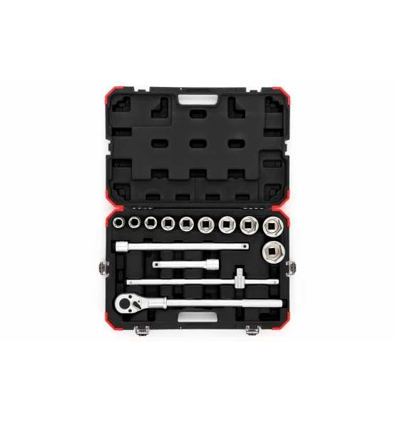 kahesuunaline vahetuskangiga narre 3/4″, padrunid 22 24 27 30 32 36 38 41 46 50 mm, pikendused 200 mm, 400 mm, T-kujuline liuguriga käepide, Steckschlüsselverlängerung 3/4″