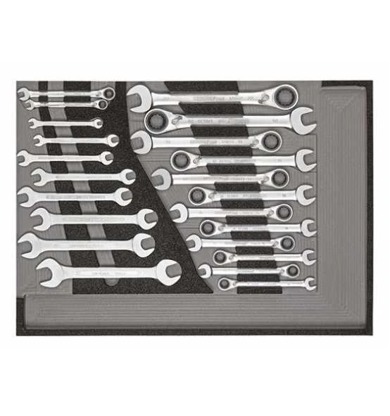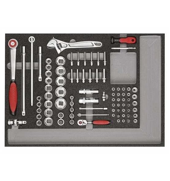 Steckschlüsselwerkzeuge:, Verbindungsvierkant nach DIN 3120, ISO 1174, mit Kugelarretierung, Innenvierkantantrieb nach DIN 3120, ISO 1174, mit Kugelfangrille, 2K-Umschaltknarre 1/4″ + 1/2″: Rechts-/Linkslauf durch Hebel umschaltbar, Druckknopfauslösung, Feinverzahnt, ovaler Kopf, 2-Komponenten-Griff, handschonende Kraftübertragung, für Steckschlüsseleinsätze, Vierkantsteckgriff 1/4″: 1-Komponenten-Griff mit Innenvierkant