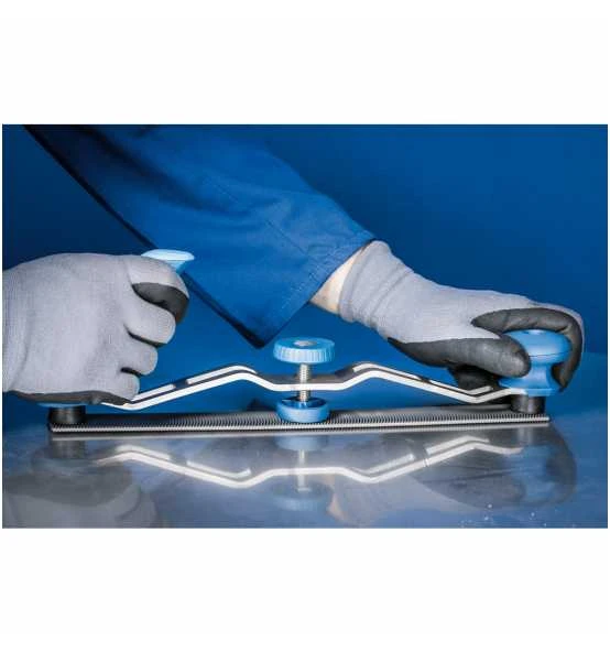Karosseriefeilenblätter können im Karosseriefeilenhalter individuell eingespannt werden und an die zu bearbeitende Oberflächenkontur angepasst werden.
