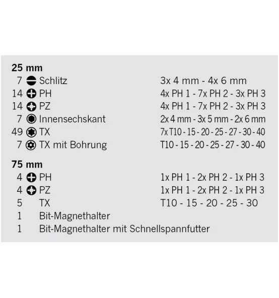 - Umfangreiche Bit-Bestückung Immer den richtigen Bit