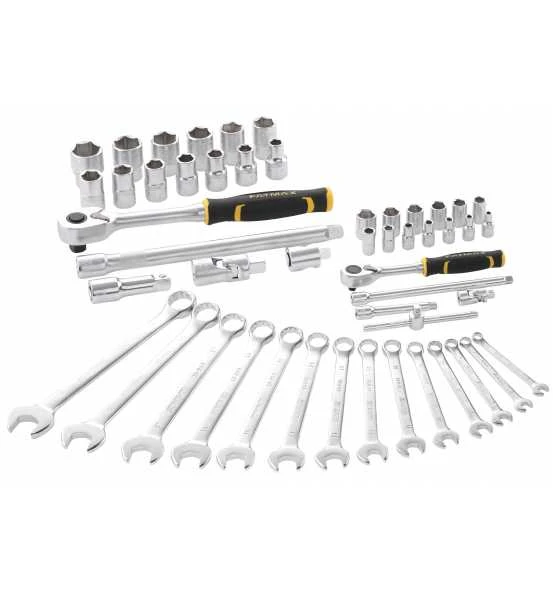 - Inhalt: 1x 1/4″ 120T Umschaltknarre mit Bi-Material-Griff, 13x 1/4″ Schraubenschlüssel (6-Kant): 4 bis 14mm, 2x 1/4″ Verlängerungen : 3″ – 5″, 1x 1/4″ Kardangelenk, 1x 1/4″ T-Gleit-Adapter, 1x 1/2″ 120T Umschaltknarre mit Bi-Material-Griff, 13x 1/2″ Steckschlüssel (6-Kant) : 10 bis 24mm, 2x 1/2″ Verlängerungen : 3″ – 5″, 1x 1/2″ Kardangelenk, 14x Kombinationsschlüssel: 6 bis 19 mm