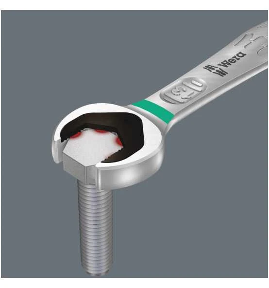 Die Doppelsechskantgeometrie sorgt für die formschlüssige Verbindung mit Schraube oder Mutter und damit ebenso für die Verringerung der Abrutschgefahr.