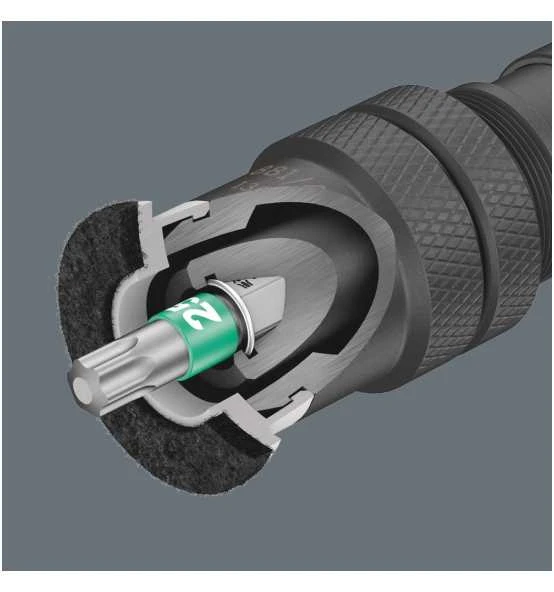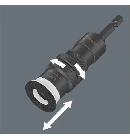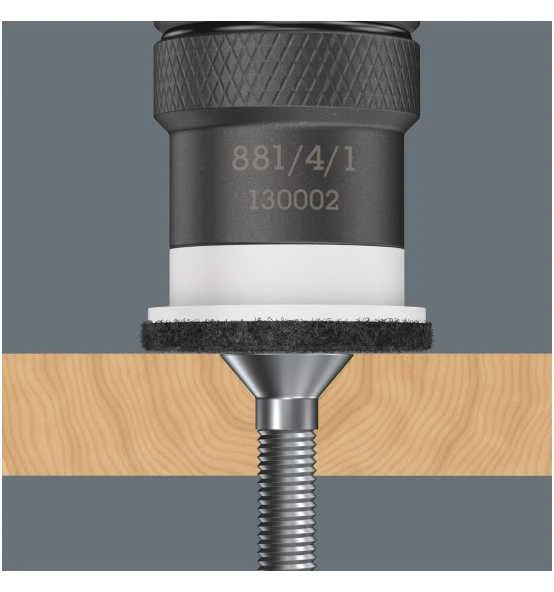 Der 881/4/1 Bithalter mit variabler Einschraubtiefenbegrenzung und Filzring sorgt für eine gleichmäßige Senktiefe und schützt die Oberflächen vor Schleifspuren.