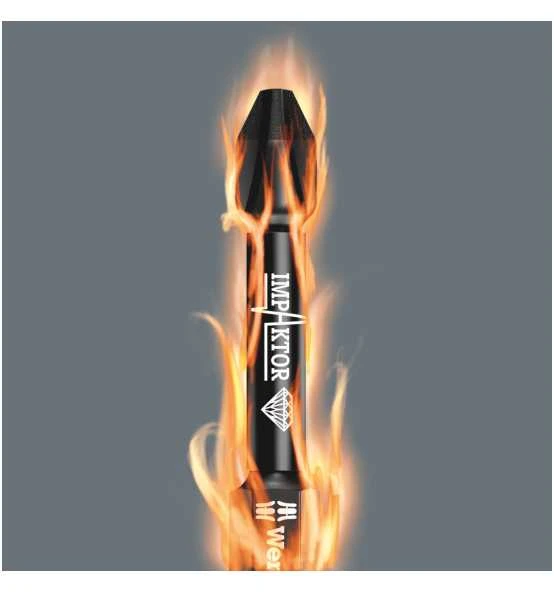 Die Impaktor-Technologie sorgt durch bestmögliche Ausnutzung der Materialeigenschaften und durch optimal angepasste Geometrie für überdurchschnittliche Standzeiten auch bei extremen Anforderungen; besonders geeignet für den Einsatz mit handelsüblichen Impakt-/Schlagschraubern; Halter mit Ringmagnet zum einfachen Halten langer und schwerer Schrauben, ideal auch für Über-Kopf-Arbeiten.