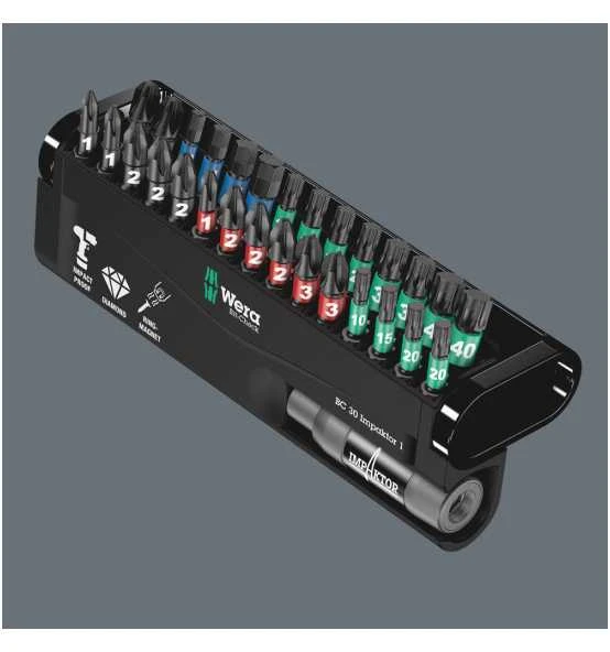 1 Impaktor Halter mit Sprengring und Magnet, 29 Impaktor Bits.