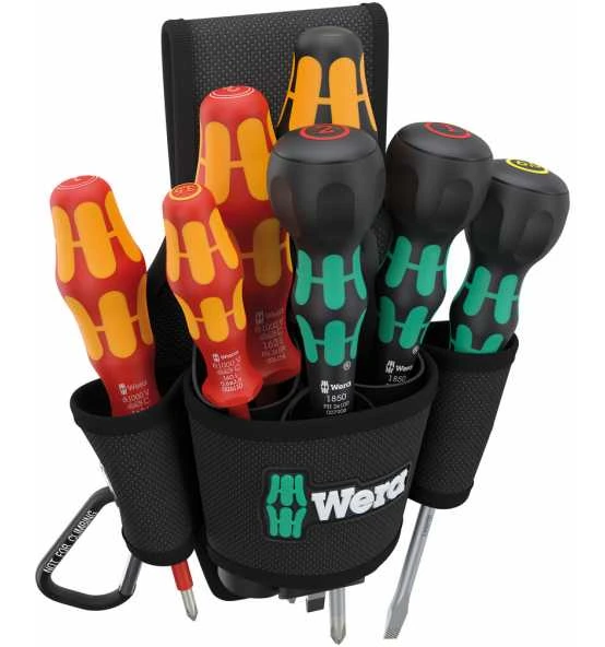 Kraftform Plus Griff für angenehm ergonomisches Arbeiten, bei dem Blasen und Schwielen vermieden werden. Harte Griffzonen für hohe Arbeitsgeschwindigkeit, während weiche Griffzonen hohe Drehmomentübertragung garantieren. Teilweise mit Lasertip: Die Spitze von Wera Lasertip-Schraubendrehern wird mit Laserstrahlen mikroskopisch fein aufgeraut. Diese raue Oberfläche „beißt“ sich förmlich im Schraubenkopf fest. Das unbeabsichtigte Herausrutschen gehört der Vergangenheit an. „Take it easy“ Werkzeugfinder mit Farbkennzeichnung nach Profilen und Größenstempelung – zum einfachen und schnellen Finden des benötigten Werkzeugs.