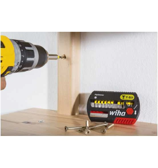 Bisher herrschte beim Bitkauf keine Klarheit, welche Bits für welche Anwendung passend sind. Wiha macht Schluss mit der Komplexität zwischen der verwendeten Maschine, dem Schraubfall und der großen Auswahl an unterschiedlichen Bits. Dank des revolutionären Bitkonzepts von Wiha ist lediglich die Schraubenform ausschlaggebend für die Auswahl des richtigen Bit.So eignet sich der Y-Bit ideal für das Verschrauben von Y-förmigen Schrauben mit einem Winkel ungleich 90° zwischen Gewinde und Schraubenkopf. Dank der patentierten, verlängerten Torsionszone ist der Bit auch für Impact- und Schlagschrauber geeignet und hat eine 120x höhere Lebensdauer im Vergleich zu den Wiha Standardbits. Zudem sind die farbigen Bits schnell und einfach auffindbar und dank des Farbmantels auch im Dunkeln mit UV-Licht gut zu finden. Somit kann die Anzahl verloren gegangener Bits gesenkt und die Kosten der Neubeschaffung eingespart werden.