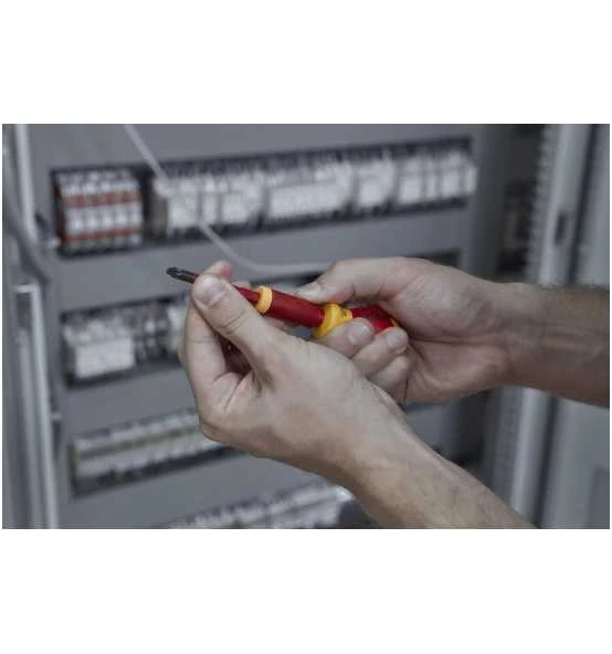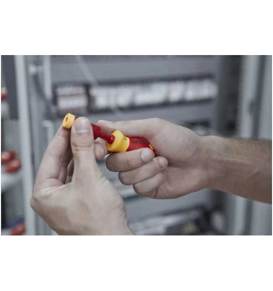 Für elektrische Anwendungen in beengten Arbeitsumgebungen benötigen Handwerker kurze und handliche Schraubendreher, weshalb oftmals der Griff gekürzt oder mit nicht isolierten Schraubendrehern gearbeitet wird – auf Kosten der eigenen Sicherheit. Mit dem isolierten Kurzschraubendreher Stubby bietet Wiha die optimale Problemlösung für diesen Anwendungsfall. Dank der Gesamtlänge von nur 105mm ist er perfekt für das Arbeiten an Engstellen geschaffen. Zudem ist der Kurzschraubendreher zu 100% mit den slimBits kompatibel und deckt somit eine ganze Reihe an Schraubprofilen ab. Bei der speziell für elektrische Anwendungen entwickelten Wiha slimTECHNOLOGY wurde die Schutzlisolation in die Klinge intergriert, um bis zu 33% schlankere Klingen zu ermöglichen. So können auch tiefliegende Schraub- und Federelemente mühelos erreicht werden. Der Stubby-Griff sowie die slimBits werden gemäß der internationalen Norm IEC 60900 einer Stückprüfung unterzogen und ermöglichen ein sicheres Arbeiten im Bereich von spannungsführenden Teilen bis 1.000 V AC.